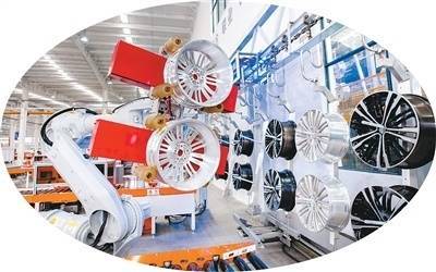 安徽今飞轮毂有限公司的智能化车间内,六条全自动化产线高效运转,工人有序协作,一批批新能源汽车轮毂顺利下线。 张 军摄(人民视觉)